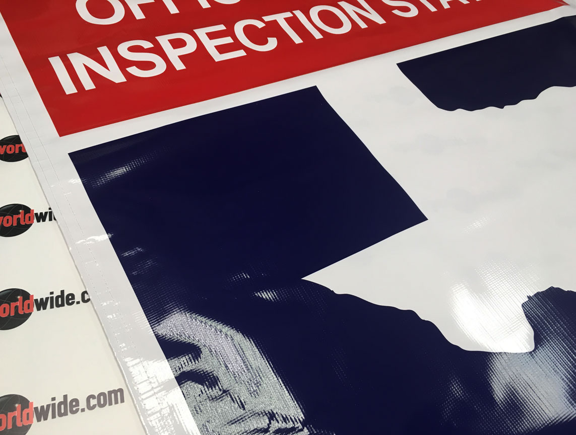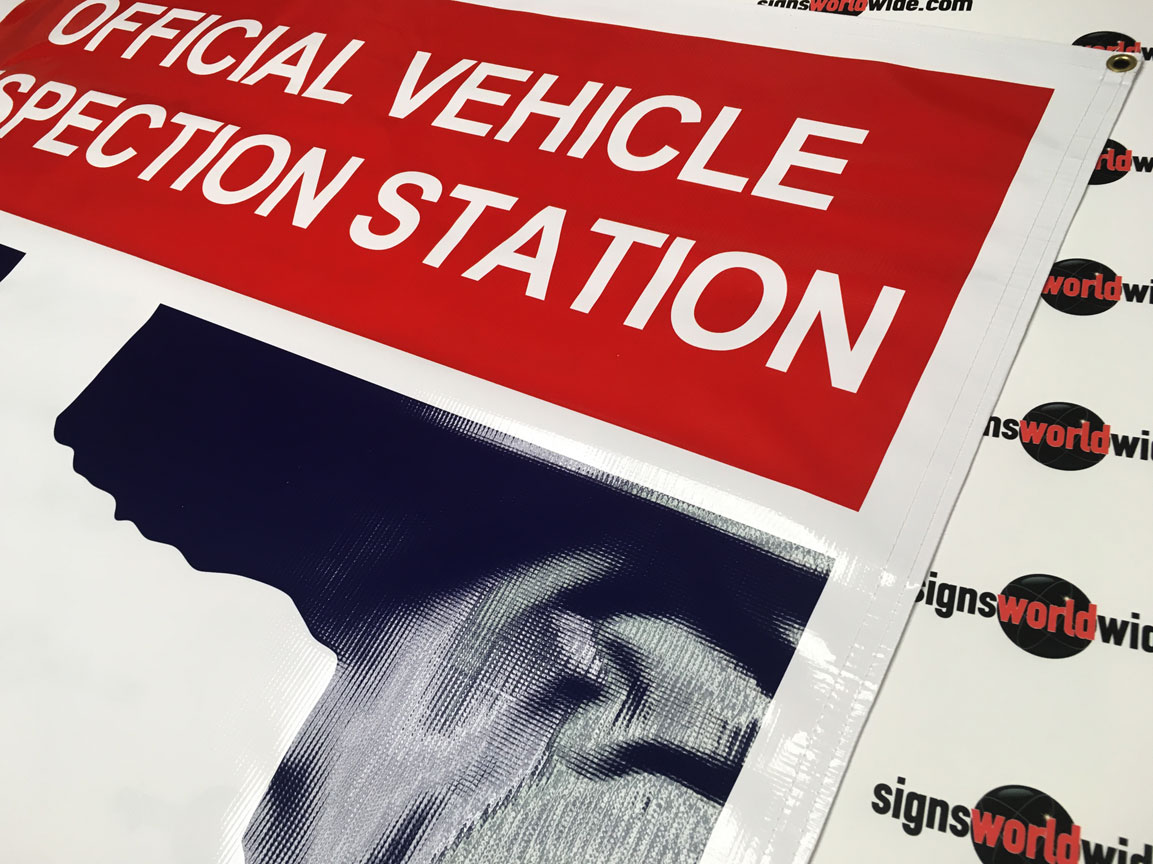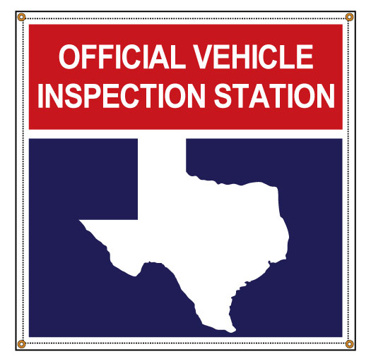 (1) 48"h x 48"w High quality banner with reinforced sewn edges, grommets and text that reads "Official Vehicle Inspection Station Logo."