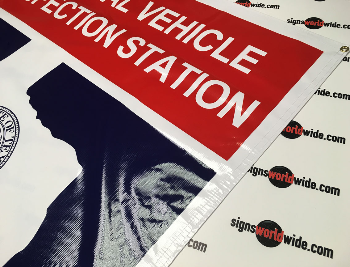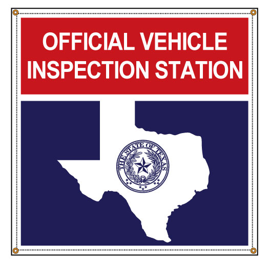 (1) 48"h x 48"w High quality banner with reinforced sewn edges, grommets and text that reads "Official Vehicle Inspection Station Logo."