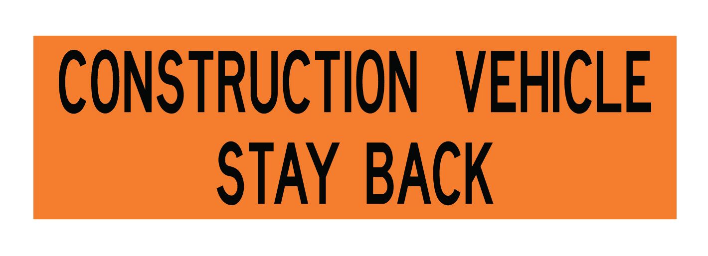 (1) 12"h x 42"w Decal that reads "Construction Vehicle, Stay Back."