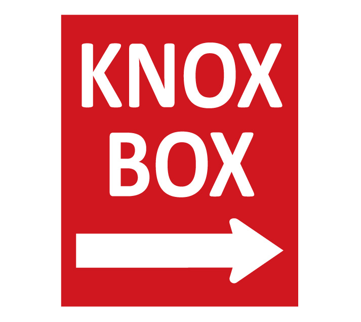 (1) 8"h x 6.5"w x .080 single sided aluminum sign with reflective background that reads: "KNOX BOX (Right Arrow)." Text is 1.75"h.