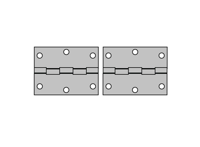 (1) Pair of 3" zinc-plated narrow utility hinges with non-removable pins. Hinges have been modified to close with two .080 pieces of material in between the hinge faces. These are the hinges used on our folding burn ban signs.