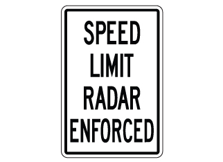 (1) 18"h x 12"w x .080 EG Reflective aluminum sign that reads "Speed Limit Radar Enforced."